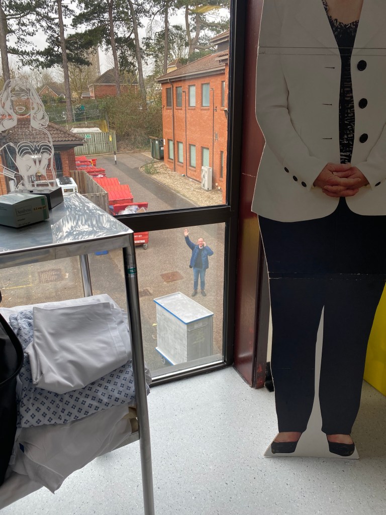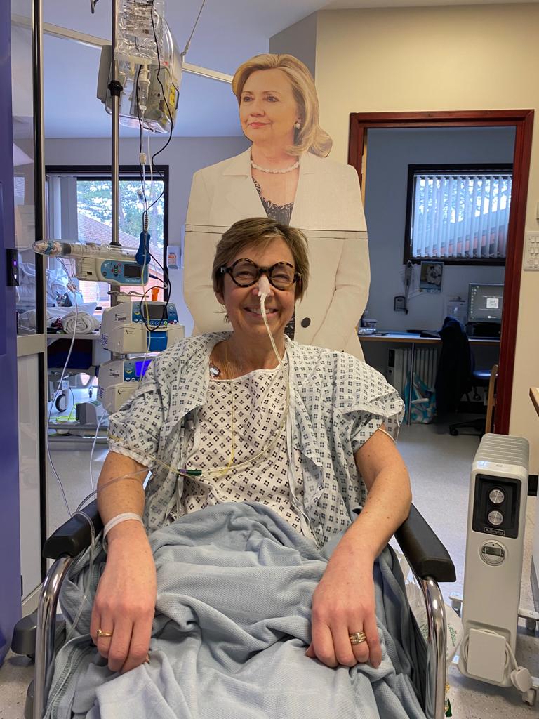 On the plus side, I know what to expect and hopefully, with that experience, how to get through it. The minus side is that due to Covid, this time I will be in hospital for weeks without any visitors at all. That will not be easy as I relied on my daily visits from Trend and from seeing a number of friends pop in to brighten my days. I will have to rely on my life-size cut out of Hillary again, on the friendly familiar faces of the nurses and staff, and on FaceTime calls.